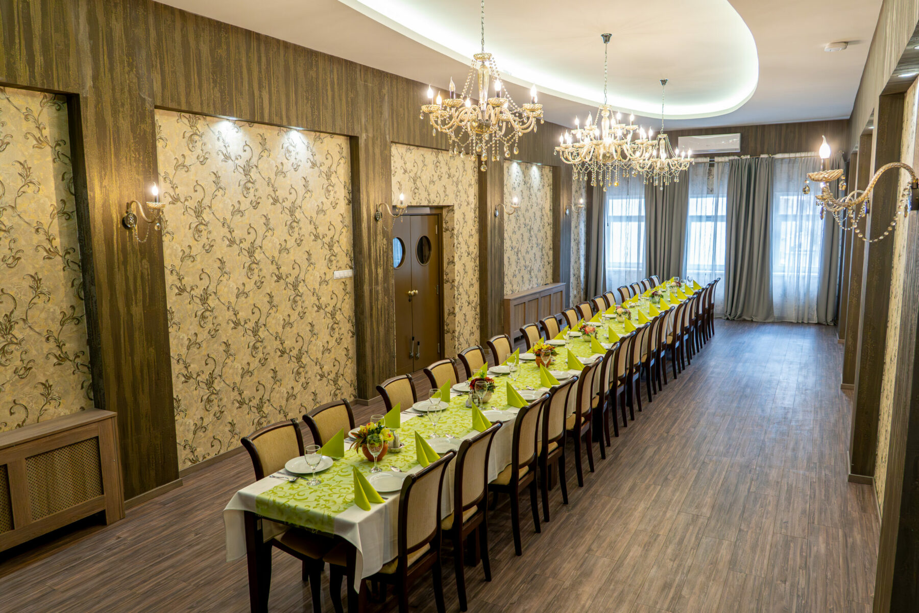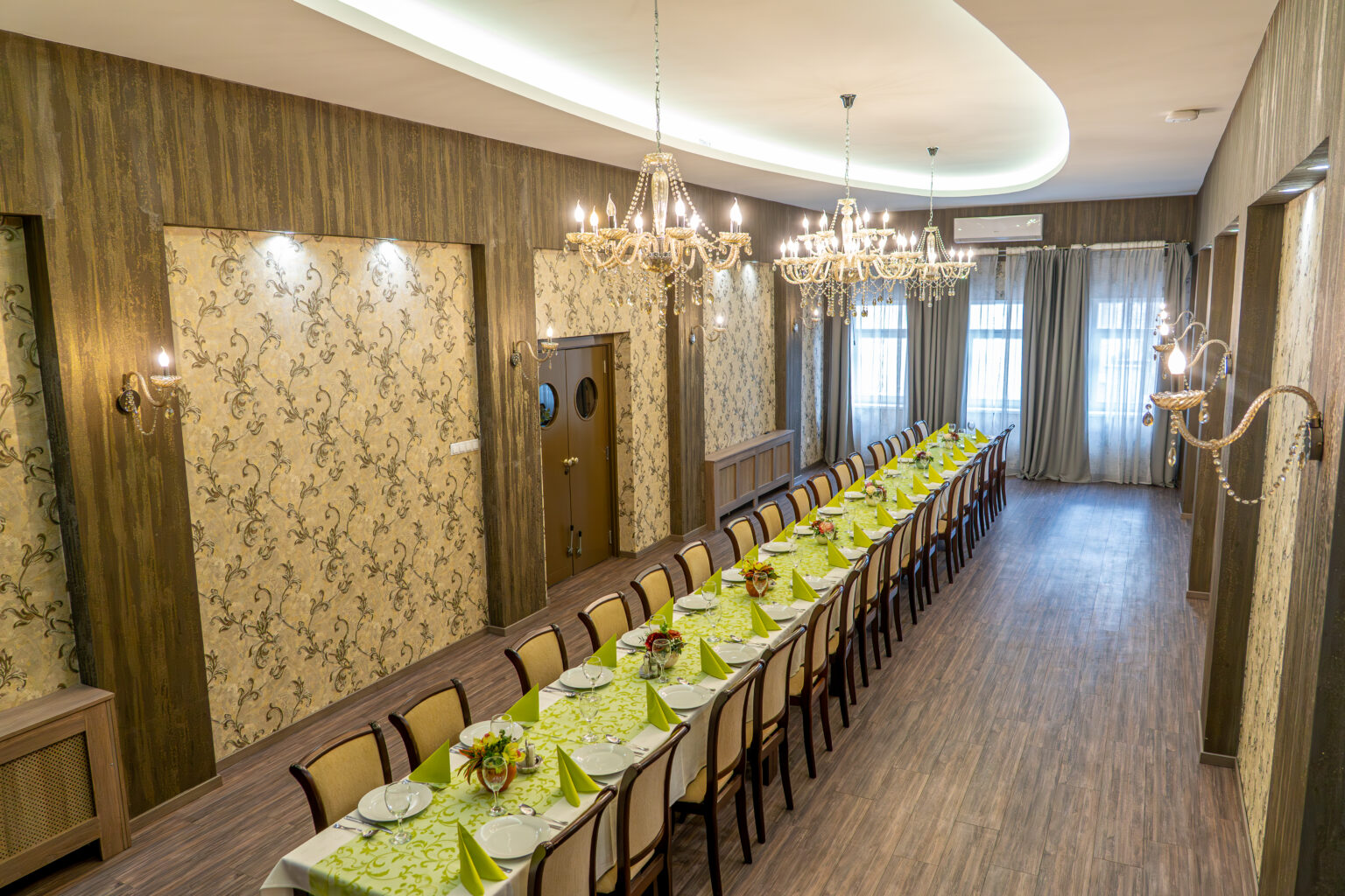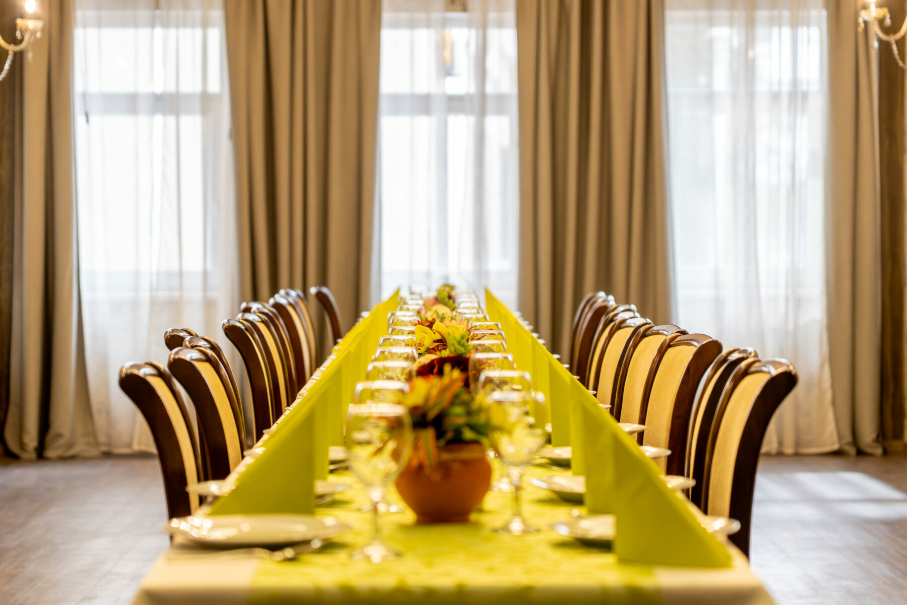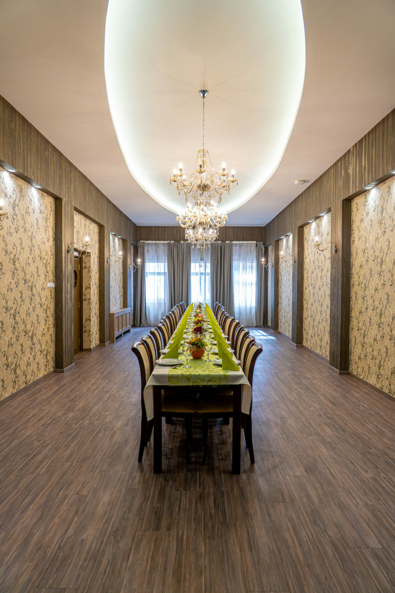 A 64 m²-es Protokoll terem a rendezvények elegáns színhelye, amely akár 50 fő befogadására alkalmas. Kifinomult, reprezentatív kialakítása tökéletes választás hivatalos eseményekhez, üzleti tárgyalásokhoz vagy exkluzív rendezvényekhez, ahol a megjelenés és a hangulat elsődleges.